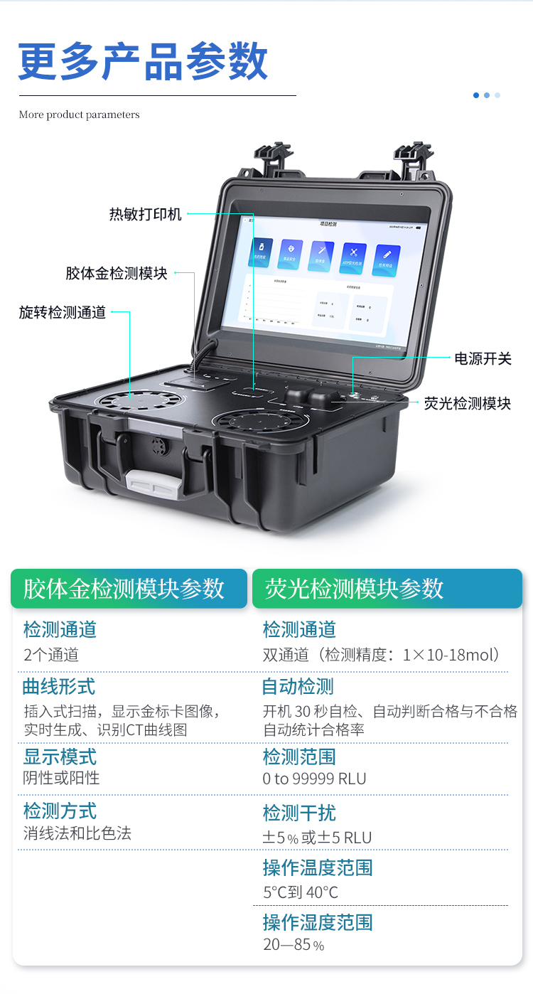 | 儀器采用臺式一體化系統(tǒng)檢測技術(shù),將分光光度模塊、膠體金檢測模塊、新型農(nóng)殘檢測模塊、數(shù)字化管理模塊、無線通訊模塊高度集成于一體,支持檢測200種食品安全檢測項目,同時預(yù)留升級檢測方法。 | 儀器檢測模塊標準化、智能化,可隨意自由組合。檢測箱體內(nèi)置多個標準檢測單元,檢測模塊可以調(diào)整配置。 | 儀器采用全新安卓智能系統(tǒng),主控芯片采用 ARM Cortex-A7,RK3288/4核處理器,10.1寸高清液晶觸摸豎屏,更加**的UI交互界面,運轉(zhuǎn)快捷;儀器配備無線通信模塊: 4G(APN)通訊模塊、Wifi模塊,藍牙傳輸,同時具有雙USB接口以及RJ45接口能以多種方式實現(xiàn)數(shù)據(jù)保存和數(shù)據(jù)傳輸功能。 | 創(chuàng)新檢測模式★檢測通道:≥12通道;采用精密旋轉(zhuǎn)比色池設(shè)計,使用同芯片同光源校準精度,解決不同光源之間的誤差值。1-12通道間誤差0.1%。(**號:ZL202022821055.2) ★儀器具有自動識別比色皿檢測功能,即:將樣品比色皿放入儀器后,點擊樣品檢測,儀器自動識別比色皿進行通道檢測。 | 進口高精光源:高精度進口四波長冷光源,通道配置 410、520、590、630nm 波長光源,一個光源芯片驅(qū)動一個光源,誤差極小,每臺設(shè)備單獨**校準光源,**比對,同時參照四種不同波段光源全方位覆蓋市面上99%的農(nóng)殘食品項目檢測。 | 膠體金模塊檢測方式:★采用COMS實時成像技術(shù),可采集多個畫面,支持2個金標同時讀卡,通過不同顏色的灰度變化,一秒精準得出結(jié)果。 | 智能操作分析系統(tǒng): | ★便捷操作系統(tǒng):設(shè)備檢測時可在同一檢測界面自動對應(yīng)相關(guān)檢測通道一次性選擇1-12個樣品名稱,無須退出界面,節(jié)省操作時間。(需提供對應(yīng)證明) | ★數(shù)據(jù)集成系統(tǒng):設(shè)備首頁自動統(tǒng)計檢測數(shù)據(jù)包含:周檢測數(shù)據(jù)、月檢測數(shù)據(jù),全部檢測總數(shù)量,均包含檢測總數(shù),合格數(shù),不合格數(shù),以及相關(guān)柱形分析圖,對各項檢測數(shù)據(jù)清晰掌握,無需電腦查詢,更加快捷直觀。(需提供對應(yīng)證明文件) | ★項目預(yù)設(shè)系統(tǒng):支持添加單個及多個相同或不相同的任務(wù)預(yù)設(shè),一鍵快速調(diào)取,每一個任務(wù)分別可以設(shè)置不同的樣品、批次、編號、來源、備注、抽樣信息、檢測信息、受檢信息、復(fù)核信息等更多信息。無縫鏈接平臺和APP實時查看下發(fā)任務(wù)。(需提供對應(yīng)證明文件) | ★數(shù)據(jù)監(jiān)管系統(tǒng):同步對接監(jiān)管平臺,數(shù)據(jù)可局域網(wǎng)和互聯(lián)網(wǎng)數(shù)據(jù)上傳,檢測結(jié)果可選擇直接傳至食品安全監(jiān)管平臺。集成OSS輸出存儲服務(wù)、區(qū)分設(shè)備定向管理應(yīng)用,進行區(qū)域食品安全監(jiān)管及大數(shù)據(jù)分析處理與數(shù)據(jù)統(tǒng)計,檢測區(qū)域食品安全長短期動態(tài),達到食品安全問題預(yù)估、預(yù)警。(需提供對應(yīng)食品理化分析系統(tǒng)計算機軟件著作權(quán))。 | ★ 自定義打印系統(tǒng):內(nèi)置全新打印系統(tǒng),新創(chuàng)自定義打印方式,可按需靈活設(shè)置開啟或關(guān)閉:產(chǎn)品合格證(國家農(nóng)業(yè)部標準要求),二維碼,抽樣信息、檢測信息,受檢信息、復(fù)核信息、抽樣日期、檢測日期等信息的打印。(需提供對應(yīng)證明) | ★系統(tǒng)遠程更新功能:可定向分客戶分儀器更新系統(tǒng),按照不同客戶后期實際需求添加項目,無需機器返廠,即可遠程實時升級全新系統(tǒng),節(jié)省時間成本及避免運輸造成設(shè)備損壞。 | 儀器主機采用一體化防水、抗壓、防撞擊、防腐蝕箱體設(shè)計,同時配備交直流供電,可連接車載電源,可選配大容量充電鋰電池,滿足現(xiàn)場野外檢測需求。 | 安全證書,放心保障:儀器具有中國計量科學(xué)研究院校準證書,**認證。 |