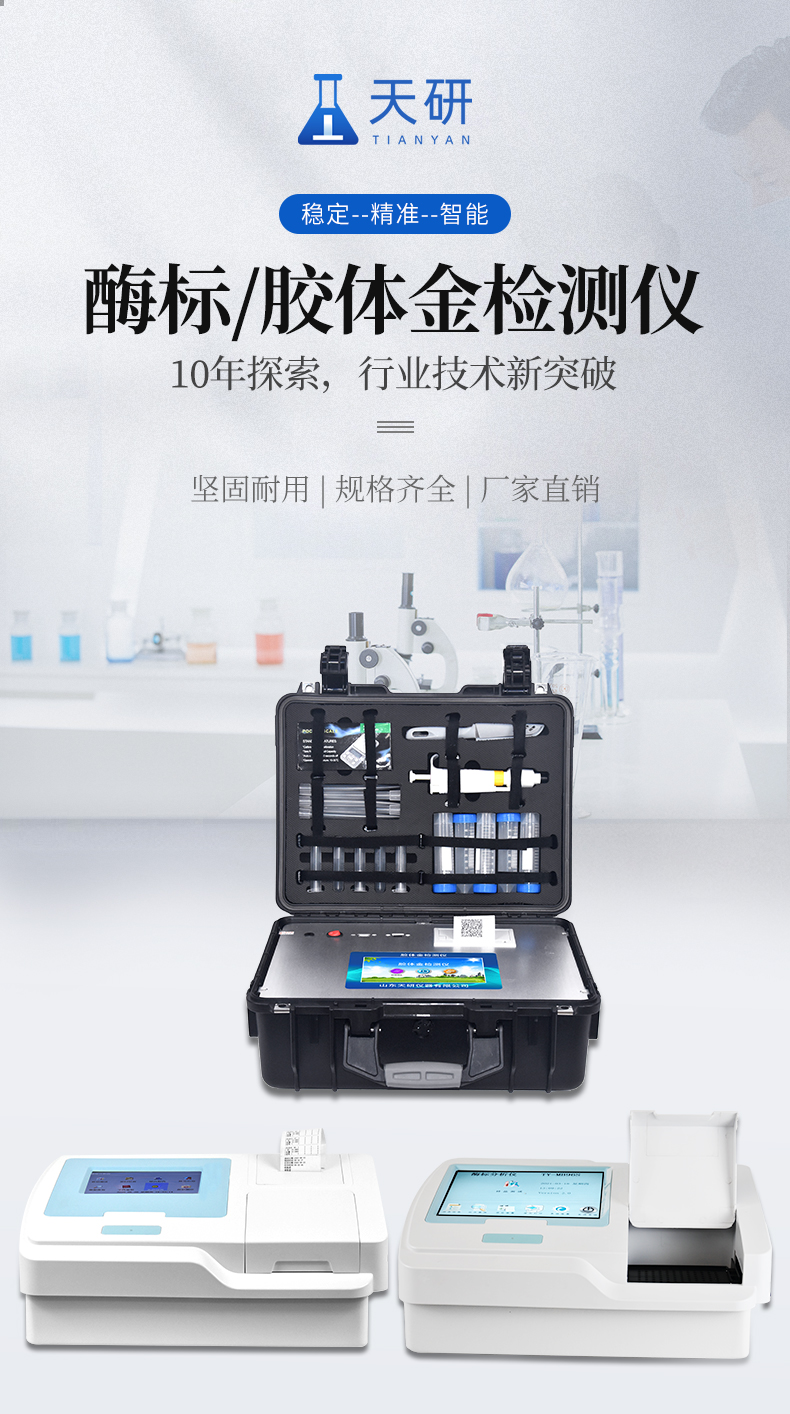 產(chǎn)品用途: 該膠體金檢測儀適用于豬、雞、鴨、羊、牛、牛奶等畜禽肉產(chǎn)品中獸藥殘留,包括抗生素類殘留、瘦肉精激素類殘留和水產(chǎn)品有毒有害物質的現(xiàn)場快速篩查定及性定量檢測。 該多功能獸藥殘留檢測儀為集成化肉品安全快速檢測分析設備,可廣泛應用于畜牧養(yǎng)殖場、屠宰場、食品肉產(chǎn)品深加工企業(yè)、食藥監(jiān)局