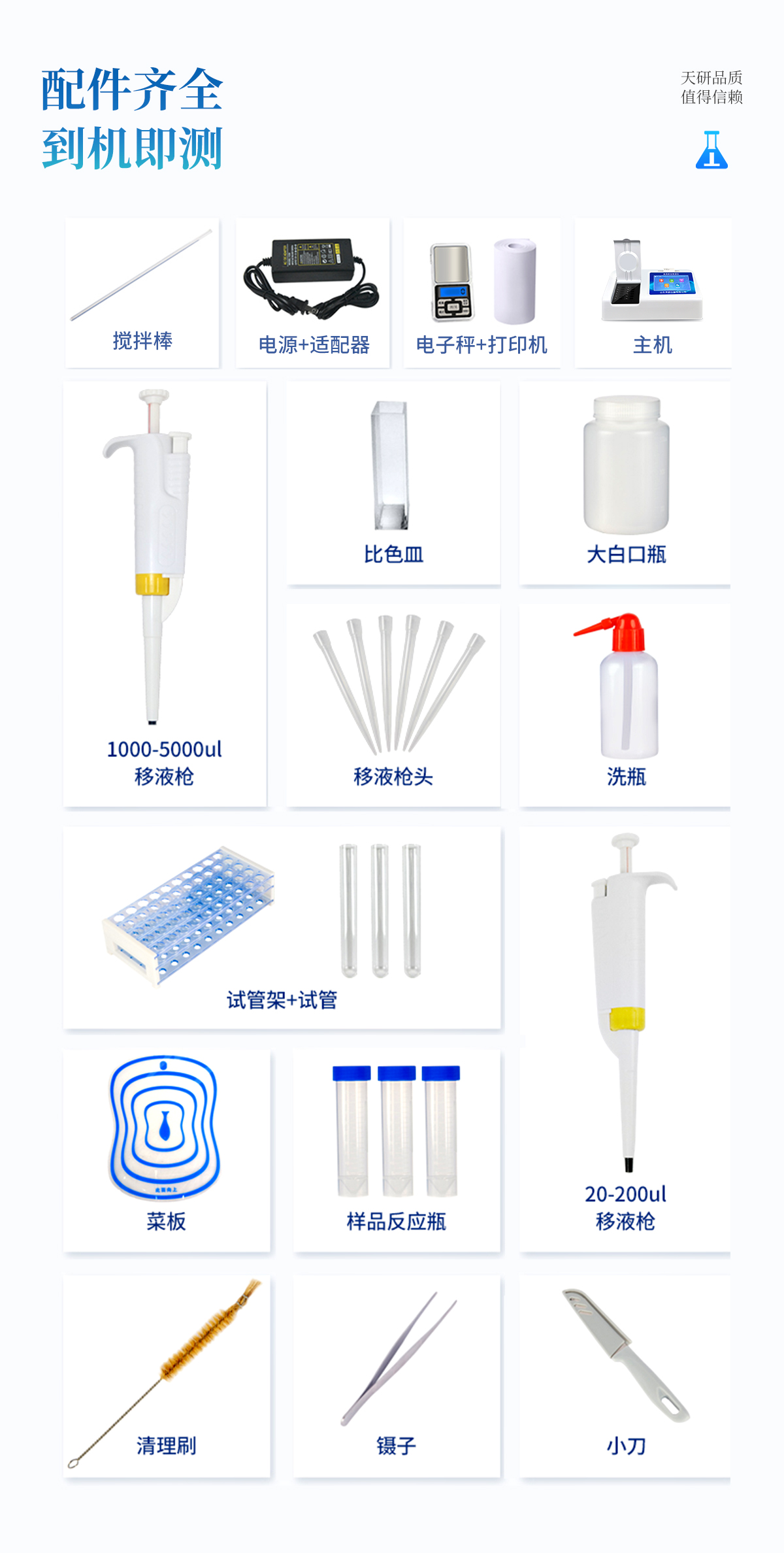| 安卓智能操作系統(tǒng),采用更加**和人性化操作,儀器具有網(wǎng)線連接、wifi聯(lián)網(wǎng)上傳、GPRS無線遠傳功能,快速上傳數(shù)據(jù)。 | 智能化程度高,儀器具有自檢功能:具有開機自檢和調零功能,具有自動檢測重復性功能。 | 檢測通道:≥12個檢測通道,可以同時測試多個樣品,每個樣品由程序控制分別獨立工作,不會互相干擾。 | 顯示方式:≥8英寸液晶觸摸屏顯示,人性化中文操作界面,讀數(shù)直觀、簡單。 | 配備新一代嵌入式熱敏打印機,可選擇手動打印或者自動打印,檢測完成可自動打印檢測報告和二維碼。 | 光源采用進口超高亮發(fā)光二極管,高精度、穩(wěn)定性強、光源可控、可以關掉不使用的光源,功耗更低。 | 采用USB2.0接口設計,方便數(shù)據(jù)的存貯和移動,并可隨時與計算機直接相連,并且可用計算機控制儀器。實現(xiàn)數(shù)據(jù)查詢、瀏覽、分析、統(tǒng)計、打印等。 | 儀器帶有監(jiān)管平臺。數(shù)據(jù)可局域網(wǎng)和互聯(lián)網(wǎng)數(shù)據(jù)上傳,檢測結果直接傳至食品安全監(jiān)管平臺。進行區(qū)域食品安全監(jiān)管及大數(shù)據(jù)分析處理,檢測區(qū)域食品安全長短期動態(tài),達到食品安全問題預估、預警 | 一體化便攜式快檢設備,滿足現(xiàn)場及流動檢測使用需求,能夠在同一軟件下實現(xiàn)所有檢測項目的檢測,并可通過同一窗口直觀顯示檢測結果。 | 儀器具有多品類多種類樣品菜單庫,可靈活選擇檢測樣品,不同的檢測通道可同時檢測不同的樣品項目。也可在儀器上直接編輯錄入樣品名稱、檢測指標、送檢單位等信息并保存進樣品數(shù)據(jù)庫。 | 樣品處理簡單省力,整體操作快速、安全、便捷。 | 儀器具有自身保護功能,可設置用戶名及密碼,防止非工作人員操作等。 | 高靈敏度,高檢測精度,高重復性精度,掃描式高精度光學傳感器。 | 儀器具有重新校準、鎖定、恢復出廠設置功能。 | 支持U盤存儲。 結果判定線可修改,對照值標定值可保存,斷電不丟失數(shù)據(jù)。 |