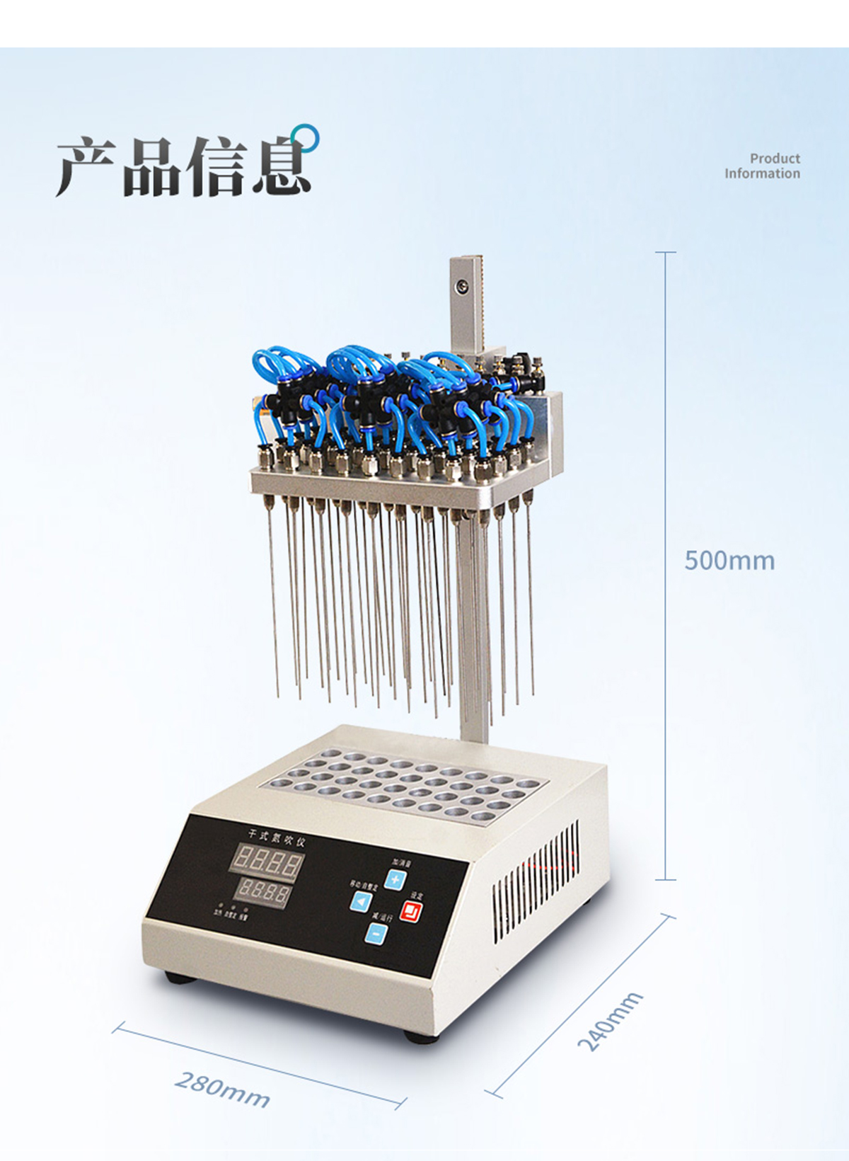 | YT-D36S | 36個(gè) | Ф16mm | 330ml/min/樣品(可調(diào)節(jié)) | 0-15L/min | 試管架一個(gè) | ±0.5℃ | 室溫---100℃ | 數(shù)顯控溫 | 340*200*460 | 600W | 8KG |