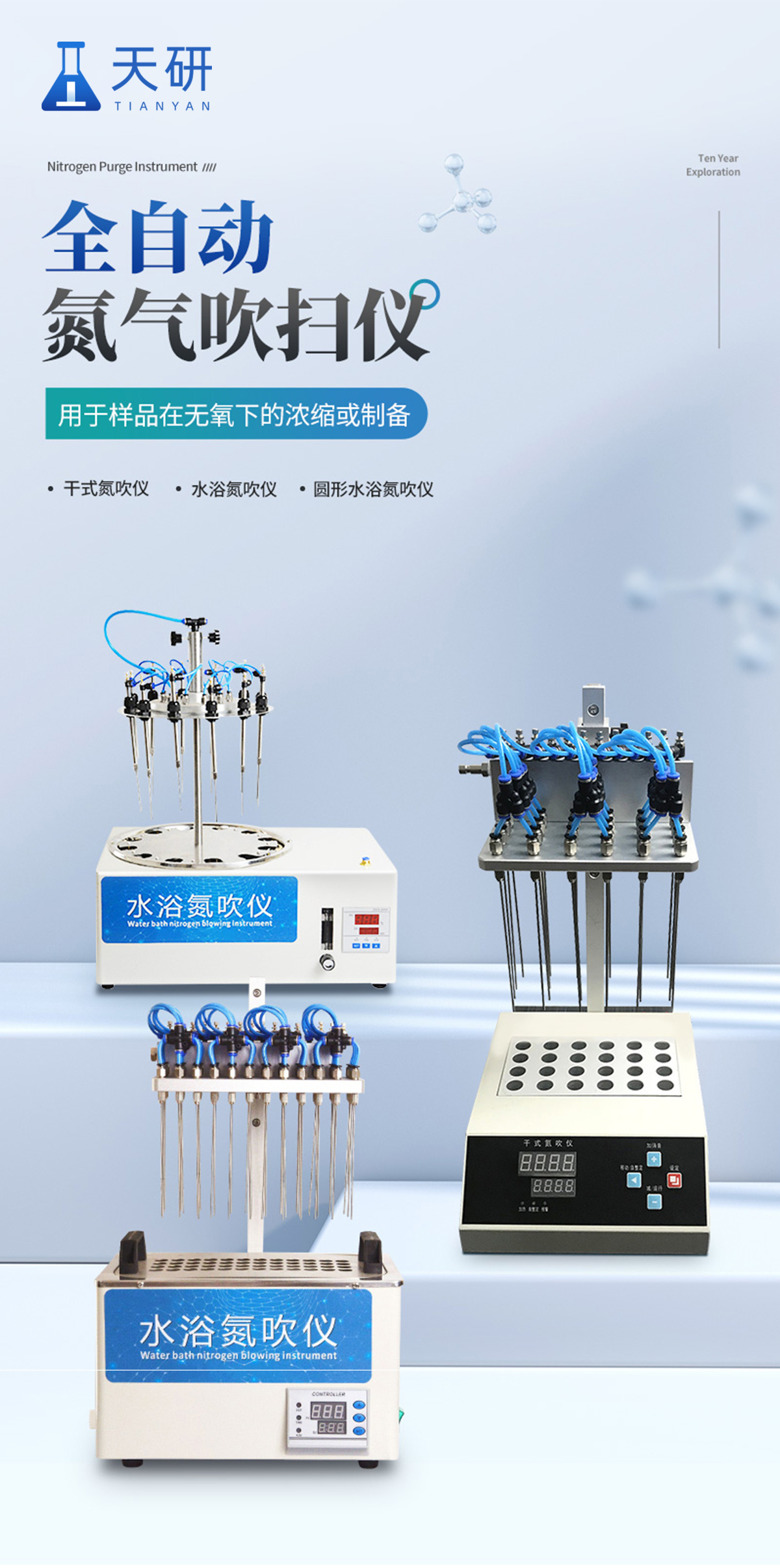 檢測(cè)項(xiàng)目: 水浴氮吹儀采用吹掃捕集技術(shù),同時(shí)可對(duì)樣品進(jìn)行控溫加熱,利用氮?dú)獾榷栊詺怏w快速、可控、連續(xù)地吹到樣品表面來(lái)達(dá)到樣品溶液快速無(wú)氧濃縮。該方法具有省時(shí)、便捷、準(zhǔn)確的特點(diǎn)。廣泛用于食品安全、醫(yī)藥、農(nóng)藥殘留檢測(cè)、臨床藥代等領(lǐng)域。 產(chǎn)品特點(diǎn):