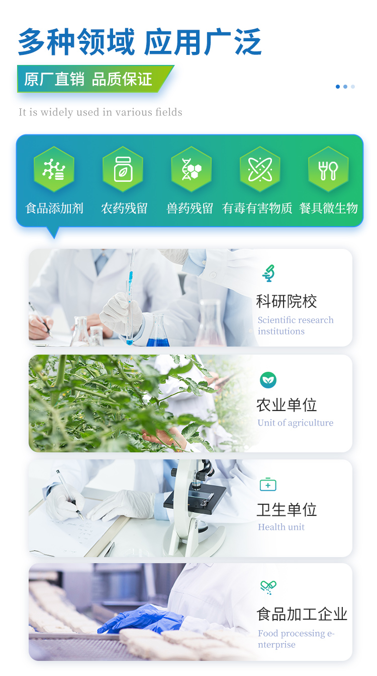 | 儀器采用臺式一體化系統(tǒng)檢測技術(shù),將分光光度模塊、新型農(nóng)殘檢測模塊、數(shù)字化管理模塊、無線通訊模塊高度集成于一體,支持檢測200種食品安全檢測項目,同時預(yù)留升級檢測方法。 | 儀器檢測模塊標準化、智能化,可隨意自由組合。檢測箱體內(nèi)置多個標準檢測單元,檢測模塊可以調(diào)整配置。 | 儀器采用全新安卓智能系統(tǒng),主控芯片采用 ARM Cortex-A7,RK3288/4核處理器,10.1寸高清液晶觸摸豎屏,更加**的UI交互界面,運轉(zhuǎn)快捷;儀器配備無線通信模塊: 4G(APN)通訊模塊、Wifi模塊,藍牙傳輸,同時具有雙USB接口以及RJ45接口能以多種方式實現(xiàn)數(shù)據(jù)保存和數(shù)據(jù)傳輸功能。 | 創(chuàng)新檢測模式: | ★檢測通道:≥12通道;采用精密旋轉(zhuǎn)比色池設(shè)計,使用同芯片同光源校準精度,解決不同光源之間的誤差值。1-12通道間誤差0.1%。(**號:ZL202022821055.2) | ★儀器具有自動識別比色皿檢測功能,即:將樣品比色皿放入儀器后,點擊樣品檢測,儀器自動識別比色皿進行通道檢測。 | 進口高精光源: | 高精度進口四波長冷光源,通道配置 410、520、590、630nm 波長光源,一個光源芯片驅(qū)動一個光源,誤差極小,每臺設(shè)備單獨**校準光源,**比對,同時參照四種不同波段光源全方位覆蓋市面上99%的農(nóng)殘食品項目檢測。 | 智能化操作系統(tǒng): | 便捷操作系統(tǒng):設(shè)備檢測時可在同一檢測界面自動對應(yīng)相關(guān)檢測通道一次性選擇1-12個樣品名稱,無須退出界面,節(jié)省操作時間。 | 數(shù)據(jù)集成系統(tǒng):設(shè)備首頁自動統(tǒng)計檢測數(shù)據(jù)包含:周檢測數(shù)據(jù)、月檢測數(shù)據(jù),全部檢測總數(shù)量,均包含檢測總數(shù),合格數(shù),不合格數(shù),以及相關(guān)柱形分析圖,對各項檢測數(shù)據(jù)清晰掌握,無需電腦查詢,更加快捷直觀。 | 項目預(yù)設(shè)系統(tǒng):支持添加單個及多個相同或不相同的任務(wù)預(yù)設(shè),一鍵快速調(diào)取,每一個任務(wù)分別可以設(shè)置不同的樣品、批次、編號、來源、備注、抽樣信息、檢測信息、受檢信息、復(fù)核信息等更多信息。無縫鏈接平臺和APP實時查看下發(fā)任務(wù)。 | 數(shù)據(jù)監(jiān)管系統(tǒng):同步對接監(jiān)管平臺,數(shù)據(jù)可局域網(wǎng)和互聯(lián)網(wǎng)數(shù)據(jù)上傳,檢測結(jié)果可選擇直接傳至食品安全監(jiān)管平臺。集成OSS輸出存儲服務(wù)、區(qū)分設(shè)備定向管理應(yīng)用,進行區(qū)域食品安全監(jiān)管及大數(shù)據(jù)分析處理與數(shù)據(jù)統(tǒng)計,檢測區(qū)域食品安全長短期動態(tài),達到食品安全問題預(yù)估、預(yù)警。 | 自定義打印系統(tǒng):內(nèi)置全新打印系統(tǒng),新創(chuàng)自定義打印方式,可按需靈活設(shè)置開啟或關(guān)閉:產(chǎn)品合格證(國家農(nóng)業(yè)部標準要求),二維碼,抽樣信息、檢測信息,受檢信息、復(fù)核信息、抽樣日期、檢測日期等信息的打印。 | 系統(tǒng)遠程更新功能:可定向分客戶分儀器更新系統(tǒng),按照不同客戶后期實際需求添加項目,無需機器返廠,即可遠程實時升級全新系統(tǒng),節(jié)省時間成本及避免運輸造成設(shè)備損壞。 | 儀器主機采用一體化防水、抗壓、防撞擊、防腐蝕箱體設(shè)計,同時配備交直流供電,可連接車載電源,可選配大容量充電鋰電池,滿足現(xiàn)場野外檢測需求。 | 安全證書,放心保障:儀器具有中國計量科學(xué)研究院校準證書,**認證。 |