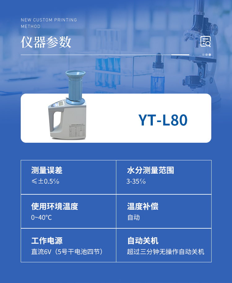 產(chǎn)品介紹: TY-L80型糧食水分測(cè)定儀是老型糧食水分測(cè)定儀的升級(jí)產(chǎn)品、在原來(lái)的基礎(chǔ)上增加了自動(dòng)累加測(cè)量次數(shù),計(jì)算平均值功能和容量自動(dòng)換算顯示功能,其性能更穩(wěn)定可靠,擁有外觀設(shè)計(jì)國(guó)家**,外形新穎美觀,完**與國(guó)外同類(lèi)產(chǎn)品媲美,是水分測(cè)量?jī)x器理想的升級(jí)換代產(chǎn)品。 容重?fù)Q算:獨(dú)特的專