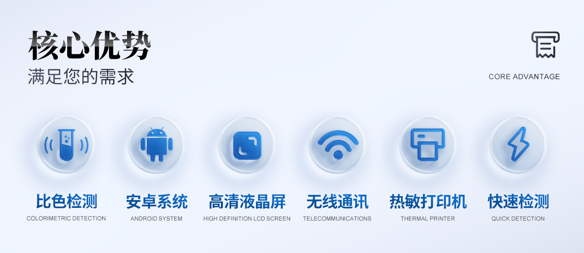 | 采用全新安卓7.1.1智能系統(tǒng),人性化中文操作界面,運(yùn)轉(zhuǎn)速度更快速,穩(wěn)定性更強(qiáng)。 | 8英寸液晶觸摸屏顯示,人性化中文操作界面,讀數(shù)直觀、簡單。 | 采用精密比色池設(shè)計(jì),使用光源一致,可以解決由于光源誤差帶來的檢測結(jié)果誤差問題,檢測結(jié)果更加精準(zhǔn)。 | 光源采用進(jìn)口超高亮發(fā)光二極管,光源亮度可以自動調(diào)節(jié)與校準(zhǔn)。 | 支持10mm、30mm、50mm皿比色和φ16mm管比色等比色方式,多元選擇,確保測量的準(zhǔn)確性; | 具有無線通訊功能,支持WIFI、RJ45、手機(jī)熱點(diǎn)聯(lián)網(wǎng)傳輸,檢測數(shù)據(jù)亦可通過U盤導(dǎo)出; | 多功能樣品管理,可對樣品進(jìn)行中英文命名,方便樣品記錄和數(shù)據(jù)存儲; | 儀器可永久存儲800萬組數(shù)據(jù),為方便大量數(shù)據(jù)查找,可通過時(shí)間檢索,并隨意選擇分析; | 支持HDMI輸出,方便用戶培訓(xùn)、講解、及大屏展示。 | 儀器帶有監(jiān)管云平臺,數(shù)據(jù)可通過局域網(wǎng)和互聯(lián)網(wǎng)上傳,亦可對接上傳至環(huán)境監(jiān)管部門平臺。 | 內(nèi)置熱敏行式打印機(jī),打印紙上的內(nèi)容可自由選擇(包括二維碼打?。?/td> | 交流220V,可選配6ah大容量充電鋰電池,方便戶外流動測試; | 后期產(chǎn)品固件可升級。 |