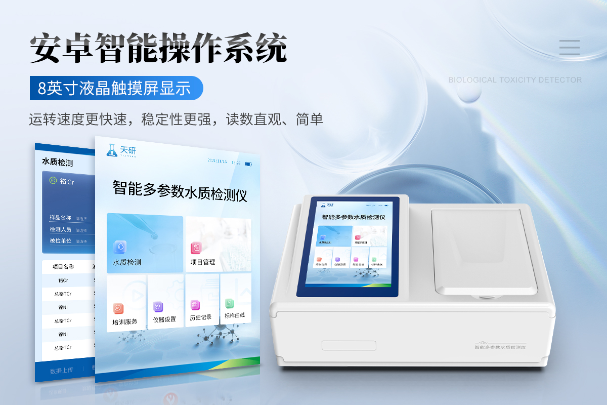 主要檢測COD 、氨氮、總磷、總氮等指標(biāo),兼具智能數(shù)據(jù)分析功能,圖表、列表顯示數(shù)據(jù),分析一目了然;高清晰度彩色液晶觸摸顯示屏,Android 智能操作系統(tǒng),中文顯示界面,中英文鍵盤,人性化操作,使用更簡單。