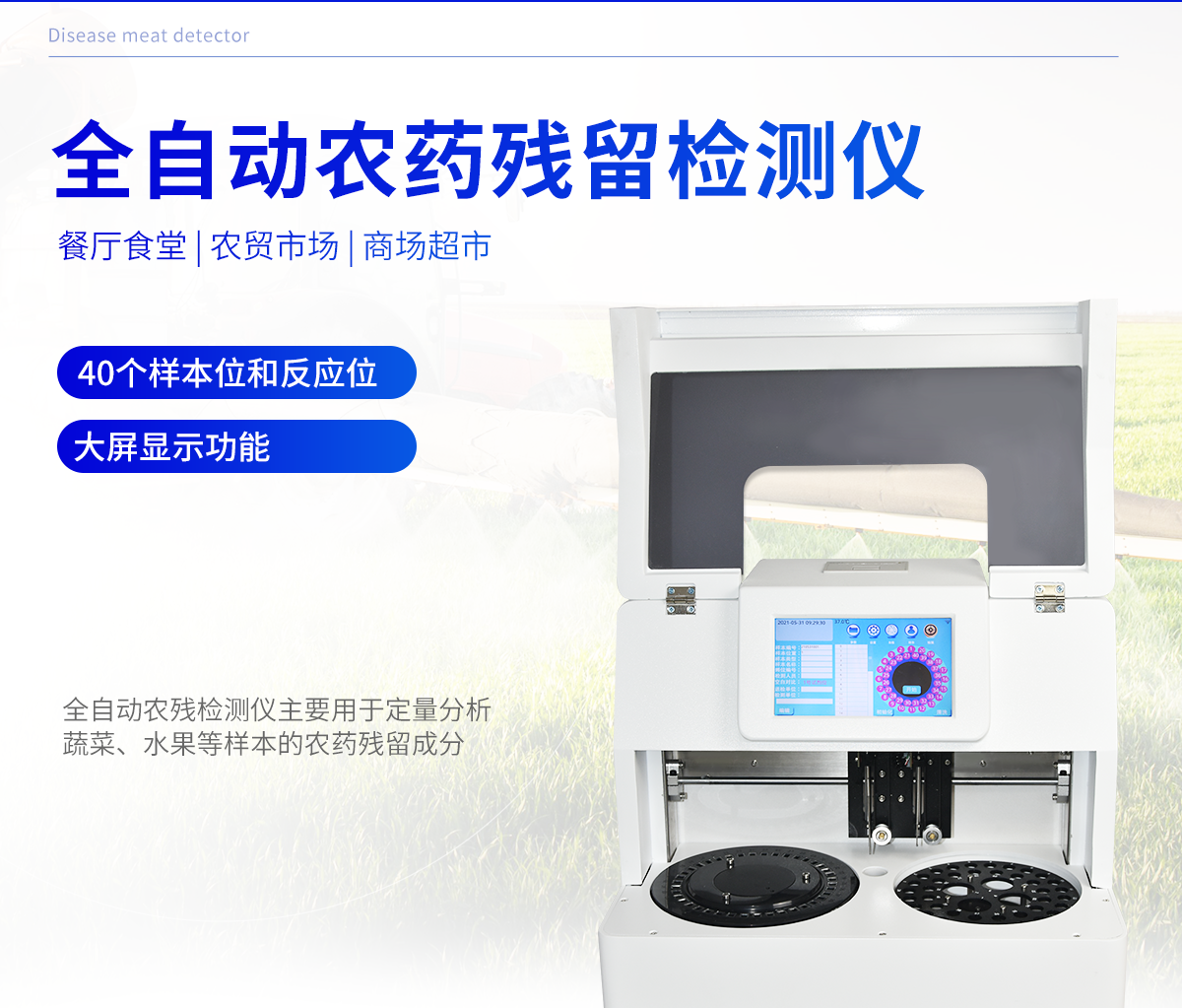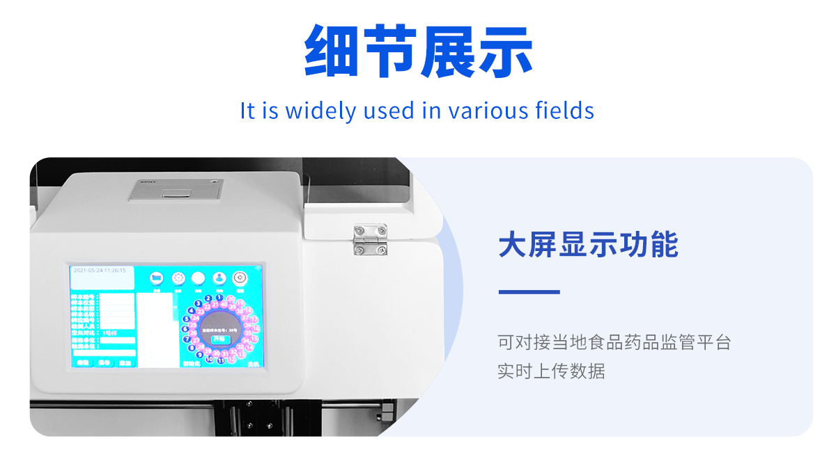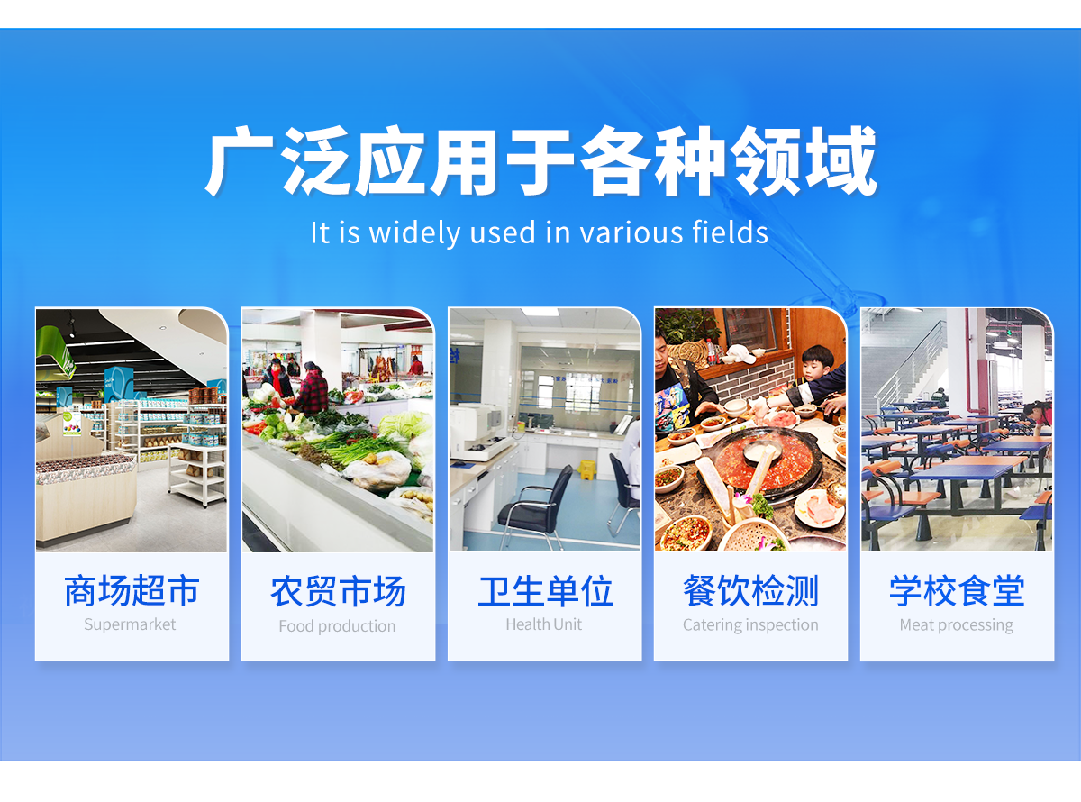 廣泛應(yīng)用于主要用于蔬菜、水果、茶葉、糧食、農(nóng)副產(chǎn)品等食品中有機(jī)磷和氨基甲酸酯類農(nóng)藥殘留的快速檢測(cè);此外還可用于果蔬茶生產(chǎn)基地和農(nóng)貿(mào)批發(fā)銷售市場(chǎng)現(xiàn)場(chǎng)檢測(cè),餐館、學(xué)校、食堂、家庭果蔬加工前的安全速測(cè)等,為廣大人民的生活安全提供保障。