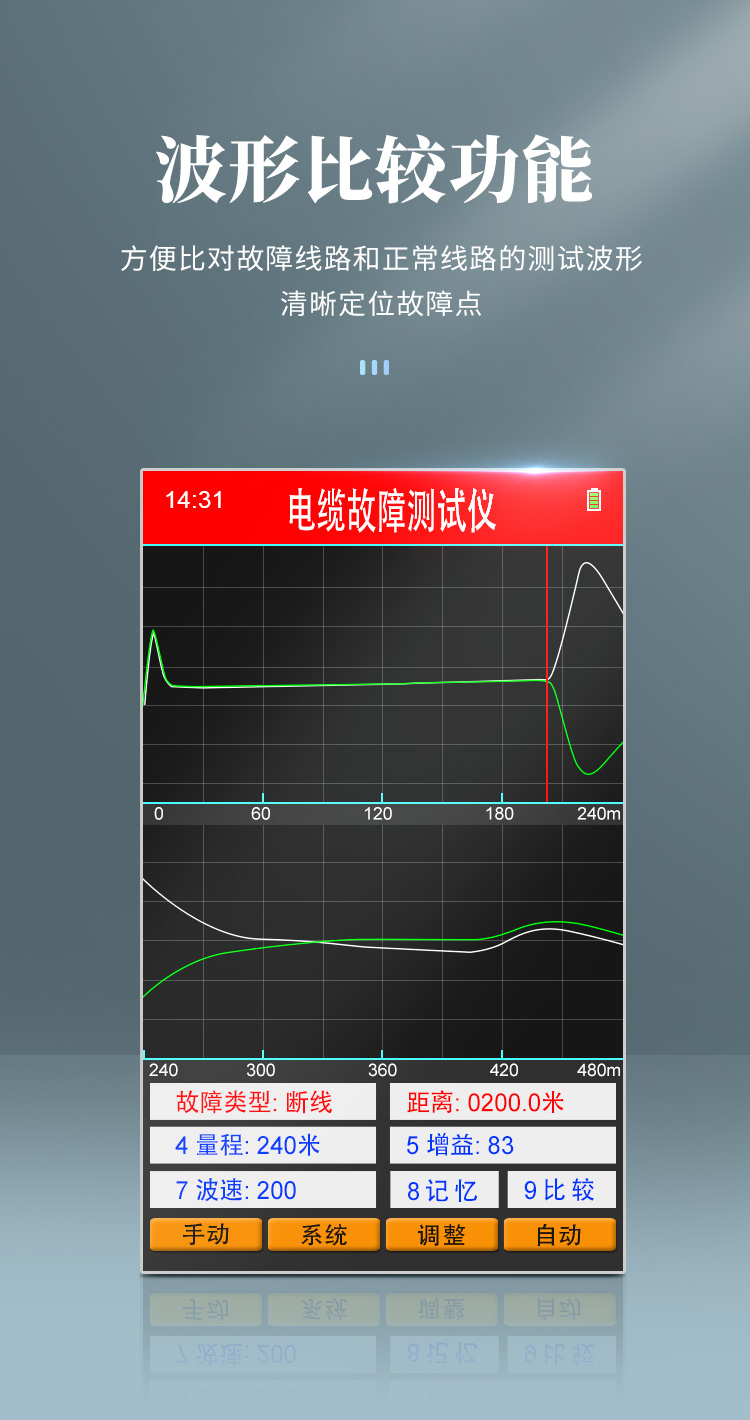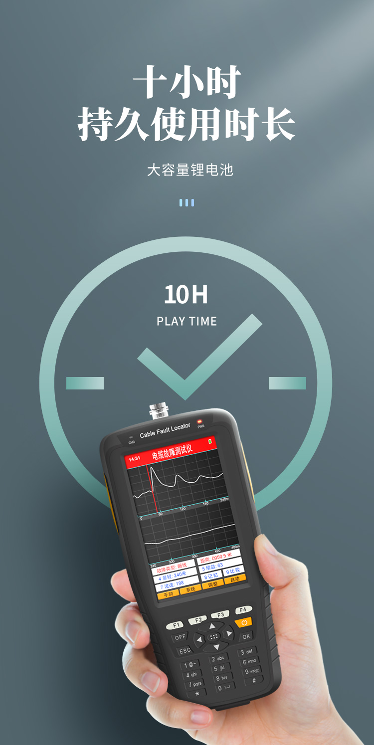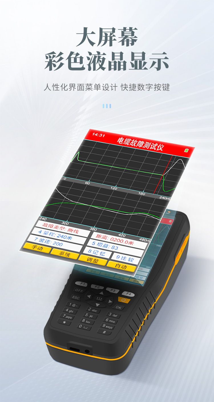 | 1)DAGC(數(shù)碼增益自動控制)系統(tǒng):可數(shù)字調(diào)節(jié)增益。杜絕原有同類型儀器因電位器旋鈕的原因造成波形的失真。也可做純線形調(diào)節(jié),有利于人工測試。 | 2)數(shù)字波形自動識別技術(shù):依靠機(jī)器自動識別人工難以判斷的波形。 | 3)采用ARM CPU配合FPGA技術(shù),可快速進(jìn)行各種復(fù)雜運(yùn)算、準(zhǔn)確判斷故障波形。 | 4)波形比較功能,方便比對故障線路和正常線路的測試波形,清晰定位故障點(diǎn)。 | 5)大屏幕彩色液晶顯示,人性化界面菜單設(shè)計(jì),快捷數(shù)字按鍵,方便使用人員操作。 | 6)高能量鋰電池,使用時間可達(dá)十小時(配合專用充電器充電)。 |