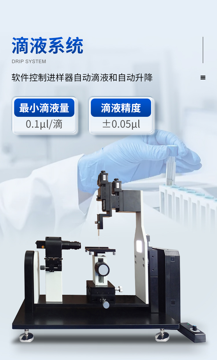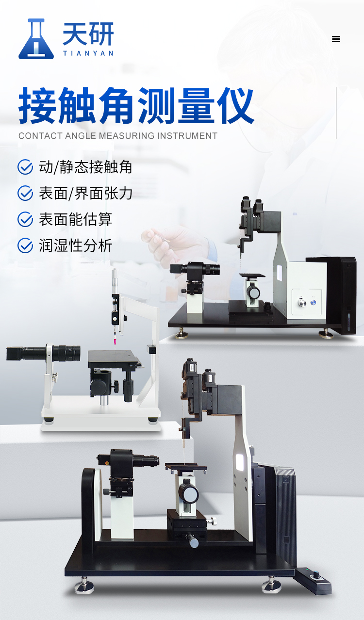 功能概述: 本機用于測試和分析液體在固體表面的接觸角、液體的表面張力、固體的表面能等。實現(xiàn)對固體表面的親/疏水性分析、潤濕性分析、潔凈度檢測、處理工藝效果評估,以及液體被競爭、吸附、吸收和鋪展等過程分析。廣泛應用于化工、醫(yī)藥、食品、電子、印染、噴涂、軍工和科教等眾多領域的測試與研究。