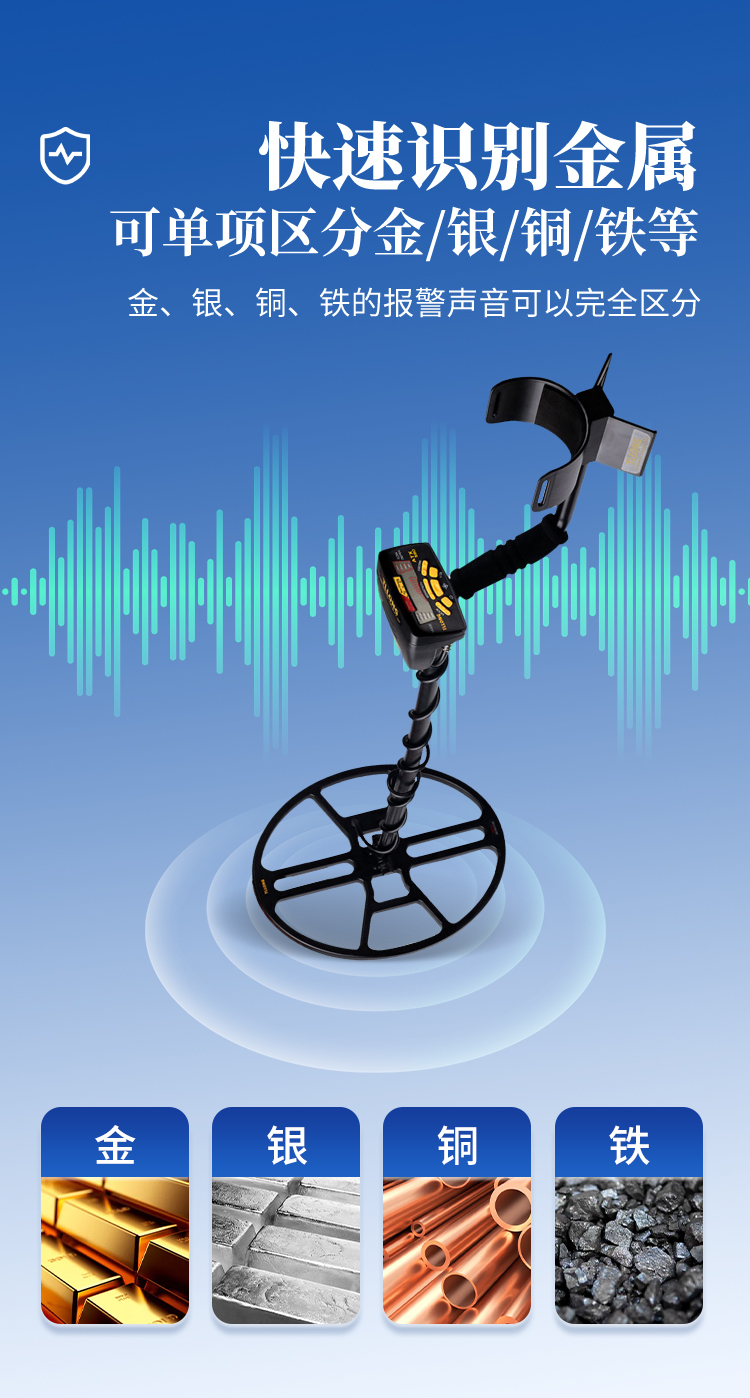 | ●探測盤:全新配置一款15存“DD”防水探測盤,可以擴大該儀器的探測范圍 | ●識別能力:可以單項區(qū)分金,銀,銅,鐵等 | ●聲音識別能力:金、銀、銅、鐵的報警聲音可以完全區(qū)分 | ●高靈敏度:提高了更強的探測靈敏度,增加機器的探測深度 | ●耳機:配置一個原廠配置的高清耳機 | ●定位: 可以快速的定位地下金屬的準確位置 | ●接收/拒絕:通過識別按鈕可以進行單項選擇探測,例如:選擇黃金,該儀器只對黃金進行報警 | ●硬幣深度顯示:在主機的右側(cè)有個顯示小金屬的深度 | ●電量狀況顯示: 可以顯示電源現(xiàn)有的電量 | ●定位按鈕: 可以精準定位金屬的位置 | ●五種探測模式: 可以選擇默認探測模式,也可以自定義探測模式 | 珠寶模式(可以刪除鐵,找到細小的金屬,比如戒指,耳環(huán),項鏈等) | 自定義模式(可以單項選擇性探測,選擇自己想要探測的金屬類型) | 遺跡模式(可以將鐵刪除,只探測有色金屬提高地下金屬探測效率) | 硬幣模式(這種識別模式的目的是排除酸性垃圾,許多拉環(huán)和標簽紙檢) | 全金屬模式(可以探測所有的金屬、金、銀、銅、鐵等) |