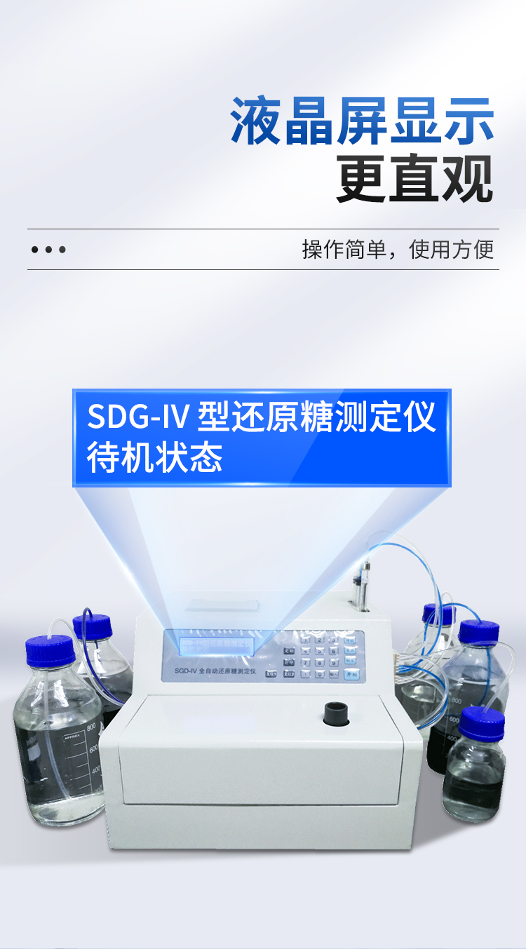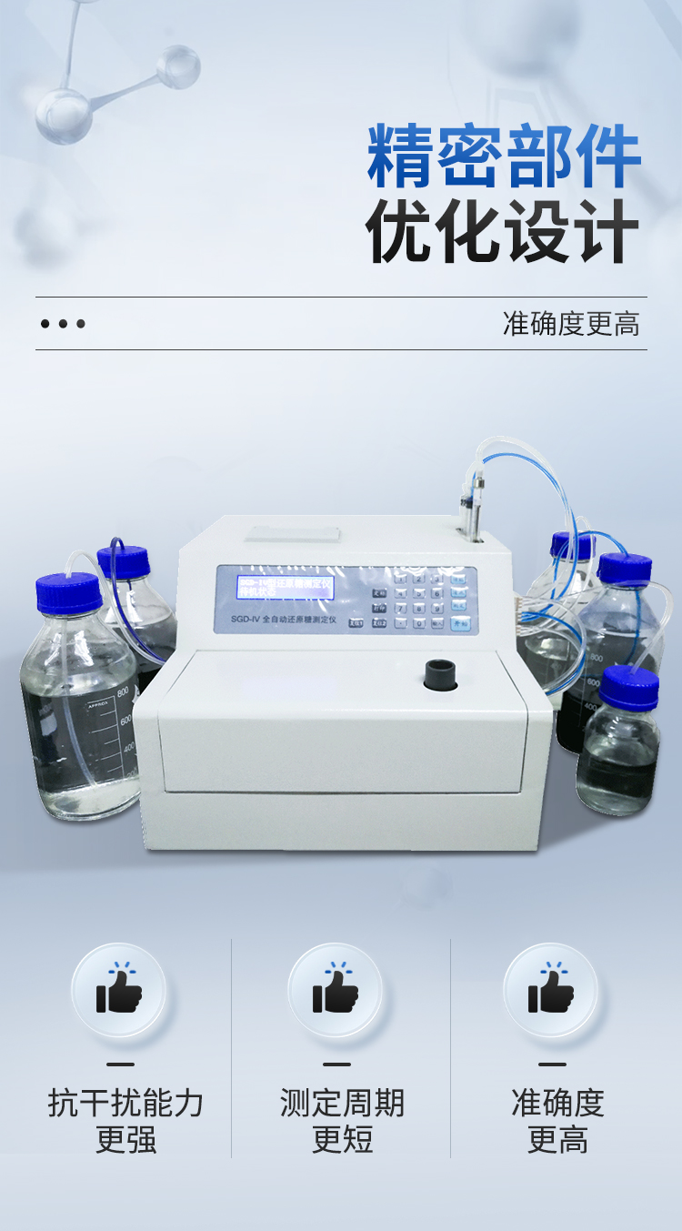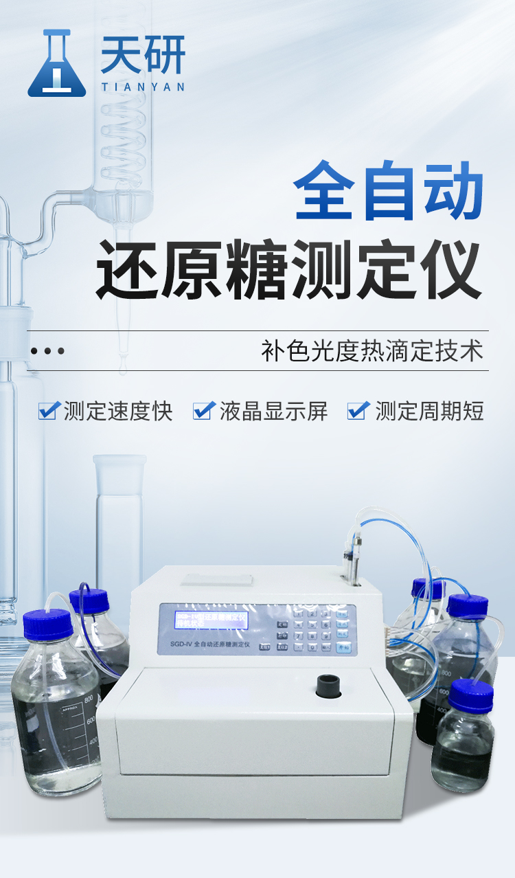 全自動還原糖測定儀是根據(jù)費林試劑測定原理設(shè)計而成的,其原理與目前國家標(biāo)準(zhǔn)一致。IV型全自動還原糖測定儀實現(xiàn)試劑泵、滴定泵自動排氣泡,操控更方便;采用精密部件優(yōu)化設(shè)計,準(zhǔn)確度更高;測定時間縮短至3分鐘以內(nèi),測定速度更快;液晶屏顯示更直觀。