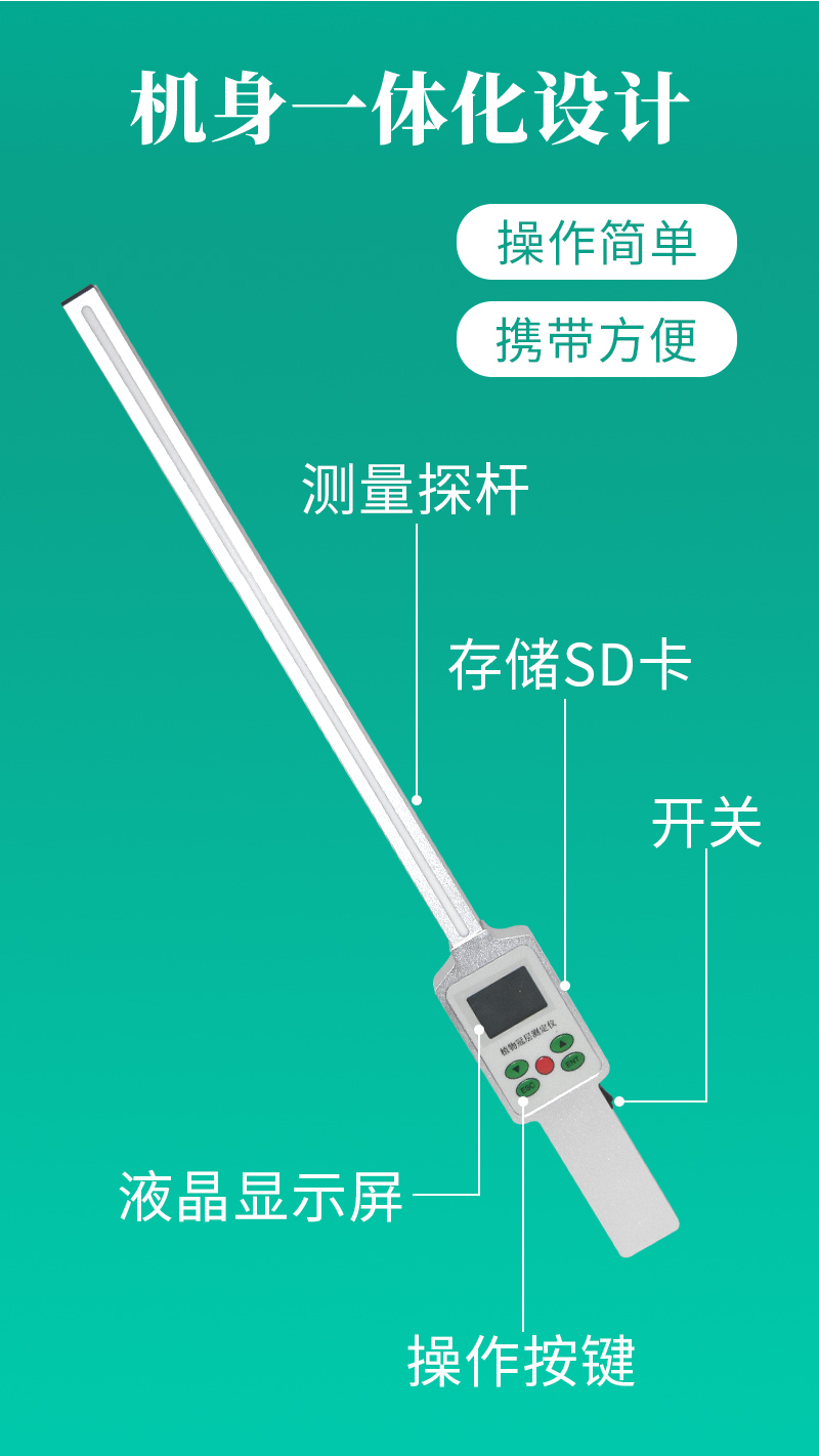 整套是由數(shù)據(jù)采集器和探桿兩部分組成。探桿上包括18個(gè)獨(dú)立的傳感器,可同時(shí)測(cè)量上、下冠層的PAR值。探桿長度:50 cm