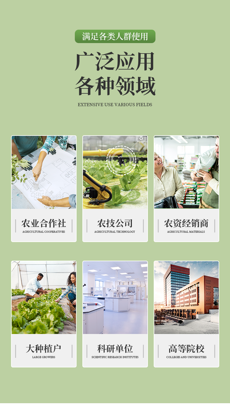 | 肥料養(yǎng)分:● 單質(zhì)化肥中的氮、磷、鉀; ● 復(fù)(混)合肥及尿素中的銨態(tài)氮、磷、鉀; ● 有機(jī)肥中速效氮、速效磷、速效鉀、全氮、全磷、全鉀、pH、有機(jī)質(zhì)等。 |