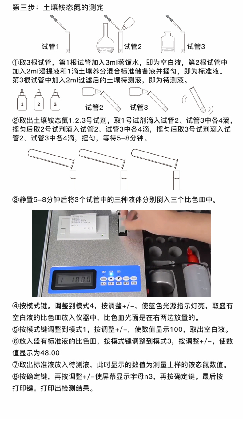 | 全國(guó)《機(jī)箱/藥劑一體式鋁合金機(jī)箱》設(shè)計(jì),便于攜帶、堅(jiān)固耐用,配套成品藥劑。 | 微電腦控制,數(shù)字化線路、程序化設(shè)計(jì),液晶顯示,交直流兩用,測(cè)試數(shù)據(jù)可存儲(chǔ)查詢,可野外流動(dòng)測(cè)試,**程度降低操作者的失誤和勞動(dòng)強(qiáng)度。 | 分辨率:0.001,觸摸式按鍵,內(nèi)置新一代熱敏打印機(jī),可打印測(cè)試結(jié)果。 | 肥料養(yǎng)分專用快速檢測(cè)儀可檢測(cè)化肥、有機(jī)肥中的速效氮、速效磷、有效鉀、全氮、全磷、全鉀、有機(jī)質(zhì)含量等。 | 采用高亮度 LED 燈作為光源, 硅半導(dǎo)體作為信號(hào)接收系統(tǒng), 壽命長(zhǎng)達(dá)10萬小時(shí)級(jí)別。光源穩(wěn)定,一致性好。 | 比色槽部分采用單通道、雙光路設(shè)計(jì),無機(jī)械位移及磨損,光路測(cè)試定位**,保證測(cè)定結(jié)果精度。 | 采用自主發(fā)明分析方法,保證檢測(cè)結(jié)果絕對(duì)達(dá)到國(guó)標(biāo)要求。 | 肥料打印結(jié)果為百分含量,測(cè)試誤差小于1%。 |