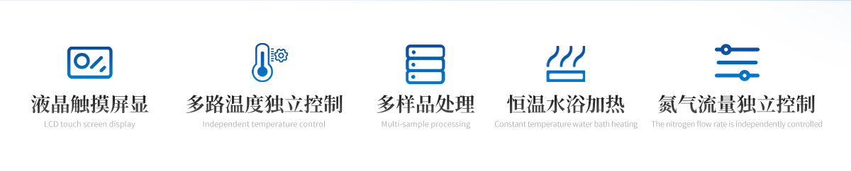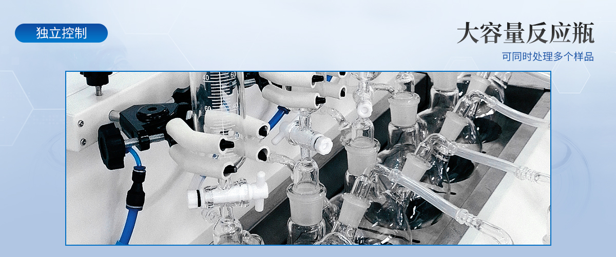 | 1.大容量反應瓶,可同時處理多個樣品。 | 2.恒溫水浴加熱,具有快速自動恒溫控制系統(tǒng),加熱溫度可以手動設定。 | 3.每個樣品的氮氣流量獨立控制調節(jié)或關閉,針閥氣體流量計準確控制和顯示氣體總消耗量。 | 4.由升降位置固定旋鈕調節(jié)樣品架及配氣系統(tǒng),旋轉樣品架的升降,正面安裝樣品,操作方便。 | 5.鹽酸口、氣體進氣口、出口三口一體且相互區(qū)分開,不干擾操作。 |