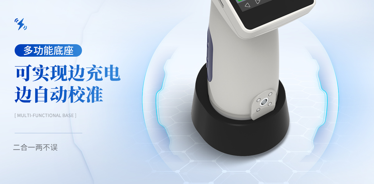 | 1. 機身設計小巧輕便,方便隨身攜帶。 | 2.測量穩(wěn)定數(shù)據(jù)準確:臺間差ΔE*ab<0.4,保證多臺設備測量結(jié)果的準確、一致、穩(wěn)定。 | 3. 開機自動校準:自帶開機自動校準功能,使用方便,校準便捷,客戶無需為校準大費周章。 | 4. 支持多種測量模型:多至34種顏色空間、11種色差公式、26種測量光源,總能適合您的需求。 | 5. 配備多功能底座,可實現(xiàn)給儀器邊充電邊自動校準的功能,二合一兩不誤。 | 6. 多種實用的輔助軟件:藍牙手機APP、USB電腦端輔助軟件支持,多設備共享管理海量色彩庫。 | 7. 一鍵生成并分享測量報告,品質(zhì)管控好幫手。 | 8. 強勁的鋰電池供電,為您的顏色品質(zhì)管控保駕續(xù)航。 |