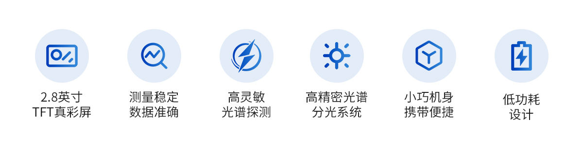 | 1.采用自主創(chuàng)新**智能監(jiān)控整個(gè)儀器的電子電路系統(tǒng)和光學(xué)系統(tǒng),確保儀器在每次測(cè)量時(shí)不受外界環(huán)境,從而達(dá)到高穩(wěn)定性(ΔE小于0.07) | 2.臺(tái)間差是指每臺(tái)儀器測(cè)量數(shù)據(jù)之間的差別。 在產(chǎn)品加工生產(chǎn)時(shí),每臺(tái)儀器的品質(zhì)嚴(yán)格把控;在產(chǎn)品出庫(kù)時(shí),每臺(tái)儀器的品檢嚴(yán)格把關(guān);確保每臺(tái)儀器的臺(tái)間差達(dá)到更小化,從而為儀器使用者創(chuàng)造一個(gè)可靠的數(shù)據(jù)化客商交流環(huán)境。 | 3.TY-SCL02便攜式分光測(cè)色儀具有三種供電方式:3200mAH可充電鋰電池供電;外接5V直流電源供電;鋰電池和外接5V直流電源同時(shí)供電; 鋰電池充電一次后可測(cè)量次數(shù)高達(dá)10000 次以上,此儀器設(shè)有過壓保護(hù)系統(tǒng),當(dāng)客戶接錯(cuò)電源時(shí)儀器內(nèi)部的過壓系統(tǒng)就會(huì)啟動(dòng),從而保護(hù)儀器不會(huì)被燒壞。 | 4.采樣高精密的光譜分光系統(tǒng)和穩(wěn)定的光學(xué)系統(tǒng),**的分離不同的波長(zhǎng)光波,從而得到精準(zhǔn)的光譜數(shù)據(jù)和Lab值。 | 5.TY-SCL02便攜式分光測(cè)色儀具有平均測(cè)量功能,平均測(cè)量次數(shù)可設(shè)置為1-99次。 | 6.儀器中內(nèi)置六種光源A、C、D50、D65、F2(CWF)和F12(U30)和三種顯色參數(shù)(L*a*b*、L*C*h*和Yxy),可滿足使用者的不同的顏色測(cè)量需求。 | 7.人體工學(xué)設(shè)計(jì)的機(jī)身帶給你更舒適的測(cè)量體驗(yàn)。 | 8.采用2.8寸TFF彩色顯示屏、圖形化的用戶界面,為您實(shí)現(xiàn)更容易的操作。 | 9.TY-SCL02便攜式分光測(cè)色儀可與電腦端上位機(jī)軟件(選配)進(jìn)行通訊連接,利用電腦端軟件對(duì)儀器的功能進(jìn)行拓展,可實(shí)現(xiàn)數(shù)據(jù)的分析、上傳、下載、打印以及手動(dòng)輸入LAB值等功能;也可與微型打印機(jī)(選配)進(jìn)行連接,可以實(shí)現(xiàn)測(cè)量數(shù)據(jù)的實(shí)時(shí)打印。 |