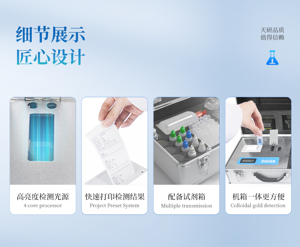 | 可檢測化肥、有機肥(含葉面肥、水溶肥、噴施肥等)、植株中的有機質(zhì)、腐殖酸等。 | 安卓智能操作系統(tǒng),采用更加**和人性化操作,儀器標配wifi聯(lián)網(wǎng)上傳、4G聯(lián)網(wǎng)傳輸、GPRS無線遠傳,快速上傳數(shù)據(jù)。 | 采用精密旋轉(zhuǎn)比色池設計,光源一致性更加**保證檢測精度。一次性可快速檢測12個樣品,極大提升檢測效率,降低檢測成本。 | 儀器配有數(shù)據(jù)接收平臺,無需數(shù)據(jù)線,數(shù)據(jù)可直接局域網(wǎng)和互聯(lián)網(wǎng)無線上傳,方便進行數(shù)據(jù)管理和數(shù)據(jù)長期分析。 | 儀器內(nèi)置新一代高速熱敏打印機,檢測完成可自動打印檢測報告和二維碼。 | 高靈敏7寸電容觸摸屏,高清晰高交互顯示,大程度降低傳統(tǒng)儀器的繁瑣操作和失誤。 | 每個通道均配置四波長冷光源,所有光源實現(xiàn)恒流穩(wěn)壓,保證波長穩(wěn)定。 硅半導體作為信號接收系統(tǒng),壽命長達10萬小時級別。重現(xiàn)性好,準確度高。 |