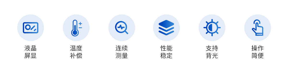 | 1.支持IP65防護(hù)等級。 | 2.支持自動識別NIST、USA、EURO*多三點標(biāo)定功能。 | 3.支持背光和恢復(fù)出廠、手動溫補(bǔ)、連續(xù)測量模式功能。 | 4.顯示標(biāo)定、測量和數(shù)據(jù)穩(wěn)定符號及溫度、電極斜率數(shù)據(jù)。 | 5.支持?jǐn)?shù)據(jù)儲存、查閱、刪除功能。 |
