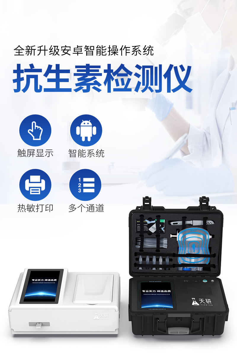 該抗生素檢測儀適用于豬、雞、鴨、羊、牛、牛奶等畜禽肉產(chǎn)品中獸藥殘留,包括抗生素類殘留、瘦肉精激素類殘留和水產(chǎn)品有毒有害物質(zhì)的現(xiàn)場快速篩查定及性定量檢測。 該多功能獸藥殘留檢測儀為集成化肉品安全快速檢測分析設(shè)備,可廣泛應(yīng)用于畜牧養(yǎng)殖場、屠宰場、食品肉產(chǎn)品深加工企業(yè)、食藥監(jiān)局、檢驗檢疫部門、衛(wèi)生部門、高教院校、科研院所、農(nóng)業(yè)部門等單位使用。